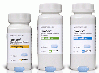 SIMCOR, a combination of simvastatin, an HMG-CoA reductase inhibitor and niacin extended-release (Niaspan®),is indicated as adjunct to diet for patients requiring modifications of lipid profiles.1 SIMCOR was approved by the FDA on Feb 15, 2008 and is indicated to reduce elevated total cholesterol (TC), low density lipoprotein cholesterol (LDL-C), non-high-density lipoprotein cholesterol (non-HDL-C),apolipoprotein B (Apo B), and triglycerides(TG), and to increase high-density lipoprotein cholesterol (HDL-C) in patients with primary hypercholesterolemia,mixed dyslipidemia, and hypertriglyceridemia when treatment with simvastatin or Niaspan monotherapies areconsidered inadequate. SIMCOR is administered as a single daily dose at bedtime, with a low fat snack. The SIMCOR (niacin extendedrelease/simvastatin) tablet is available in strengths of 500/20 mg, 750/20 mg, and 1000/20 mg. The dosage range is500/20 mg/day to 2000/40 mg/day with a recommended initial dose of 500/20 mg/day for patients not previously taking niacin extended-release. The dose should be increased based upon desired lipid effects and individual tolerability.