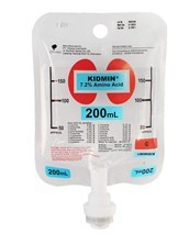 Indications : KIDMIN is indicated for the provision of amino acids in the following instances in patients with acute of chronic renal failure : hypoproteinemia, malnutrition. Dosage and administration : Chronic Renal Failure Peripheral vein infusion : The usual adult dosage is 200 ml per day, infused via a peripheral vein. The usual infusion rate in adults is 100 ml over 60 min (approximately 25 drops per min) and it should be slowly infused in children, the elderly and seriously ill patients. The dosage may be adjusted according to the patient’s condition, body weight and age. When administered during hemodialysis, it should be infused via the vein side injection port of dialysis circuit starting 90-60 min. before the end of hemodialysis therapy. Regarding calories, more than 1500 kcal per day is recommended to be provided for the efficiency of amino acid utilization. Central vein infusion : The usual adult dosage is 400 ml per day, infused via a central vein by total parenteral nutrition. The dosage may be adjusted according to the patients condition, body weight and age. More than 300 kcal of nonprotein calories should be administered per 1 g of nitrogen (100 ml of this product) for the efficiency of amino acid utilization. Acute Renal Failure The usual adult dosage is 600 ml per day, infused via a central vein by total parenteral nutrition. The dosage may be adjusted according to the patients condition, body weight and age. More than 300 kcal of nonprotein calories should be administered per 1 g of nitrogen (100 ml of this product) for the efficiency of amino acid utilization.
