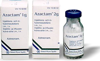 Aztreonam (trade name Azactam) is a synthetic monocyclic beta-lactam antibiotic (a monobactam), with the nucleus based on a simpler monobactam isolated from Chromobacterium violaceum. It was approved by the U.S. Food and Drug Administration (FDA) in 1986. It is resistant to some beta-lactamases, but is inactivated by extended-spectrum beta-lactamases.