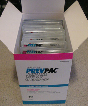 Prevpac Generic name: Amoxicillin, clarithromycin, and lansoprazole