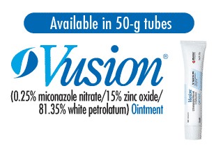 Vusion is a steroid-free formulation that contains the active ingredient miconazole nitrate at a concentration of 0.25%, which directly treats the infection with proven antifungal efficacy. The ointment base for Vusion is comprised of zinc oxide and white petrolatum, which are the main components in most common diaper rash products. In clinical trials, statistically significant improvement was observed in infants with DDCC within three days of treatment with Vusion.