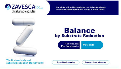 INDICATIONS ZAVESCA® is indicated for the treatment of adult patients with mild to moderate type 1 Gaucher disease for whom enzyme replacement therapy is not a therapeutic option (e.g., due to constraints such as allergy, hypersensitivity, or poor venous access).
