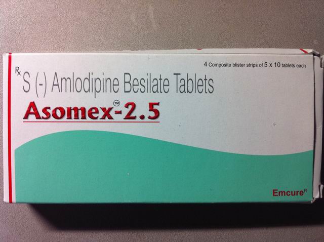 Asomex,a brand of Amlodipine Besilate, is a calcium channel blocker used in the control of high blood pressure. Asomex works by blocking the calcium needed for muscle contraction in either primary heart muscles or primary arterial muscles.