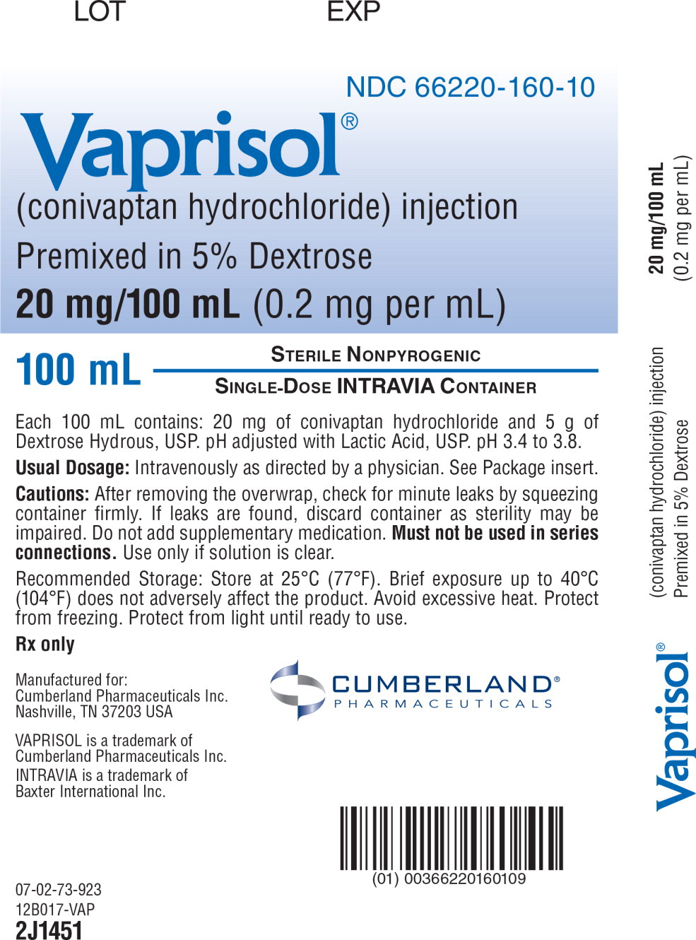 SIDE EFFECTS The most common adverse reactions reported with VAPRISOL administration were infusion site reactions. In studies in patients and healthy volunteers, infusion site reactions occurred in 73% and 63% of subjects treated with VAPRISOL 20 mg/day and 40 mg/day, respectively, compared to 4% in the placebo group. Infusion site reactions were the most common type of adverse event leading to discontinuation of VAPRISOL. Discontinuations from treatment due to infusion site reactions were more common among VAPRISOL-treated patients (3%) than among placebo-treated patients (0%). Some serious infusion site reactions did occur. The adverse reactions presented in Table 5 are derived from 72 healthy volunteers and 243 patients with euvolemic or hypervolemic hyponatremia who received VAPRISOL 20 mg IV as a loading dose followed by 40 mg/day IV for 2 to 4 days, from 37 patients with euvolemic or hypervolemic hyponatremia who received VAPRISOL 20 mg IV as a loading dose followed by 20 mg/day IV for 2 to 4 days in an open-label study, and from 40 healthy volunteers and 29 patients with euvolemic or hypervolemic hyponatremia who received placebo. The adverse reactions occurred in at least 5% of patients treated with VAPRISOL and at a higher incidence for VAPRISOL-treated patients than for placebo-treated patients.