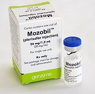 Mozobil是一种造血干细胞激活剂以及CXCR4趋化因子拮抗剂。CXXR4属于特异性的基质细胞衍生因子1(SDF-1),SDF-1具有潜在的淋巴细胞趋化活性。由于SDF-1与CXCR4之间的相互作用对于造血干细胞停留在骨髓内具有非常重要的作用,所以能够阻断CXCR4受体的药物应该具有“动员”造血干细胞“释放”入血液的能力。Mozobil与粒细胞集落刺激因子(G-CSF)联合应用可将造血干细胞释放入周围血液中,收集后即可用于非霍奇金淋巴瘤和多发性骨髓瘤患者的自体移植。