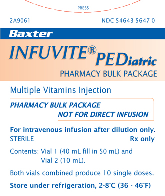HOW SUPPLIED INFUVITE ADULT (PHARMACY BULK PACKAGE) – NDC 54643-5649-2, is available in boxes containing 2 vials – 1 each of Vial 1 (50 mL) and Vial 2 (50 mL Fill in 100 mL Vial). Mix contents of Vial 1 with Vial 2 to provide 10 single doses.
