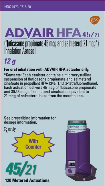 • Treatment of asthma in patients aged 12 years and older: 2 inhalations of ADVAIR HFA 45/21, ADVAIR HFA 115/21, or ADVAIR HFA 230/21 twice daily. Starting dosage is based on asthma severity.