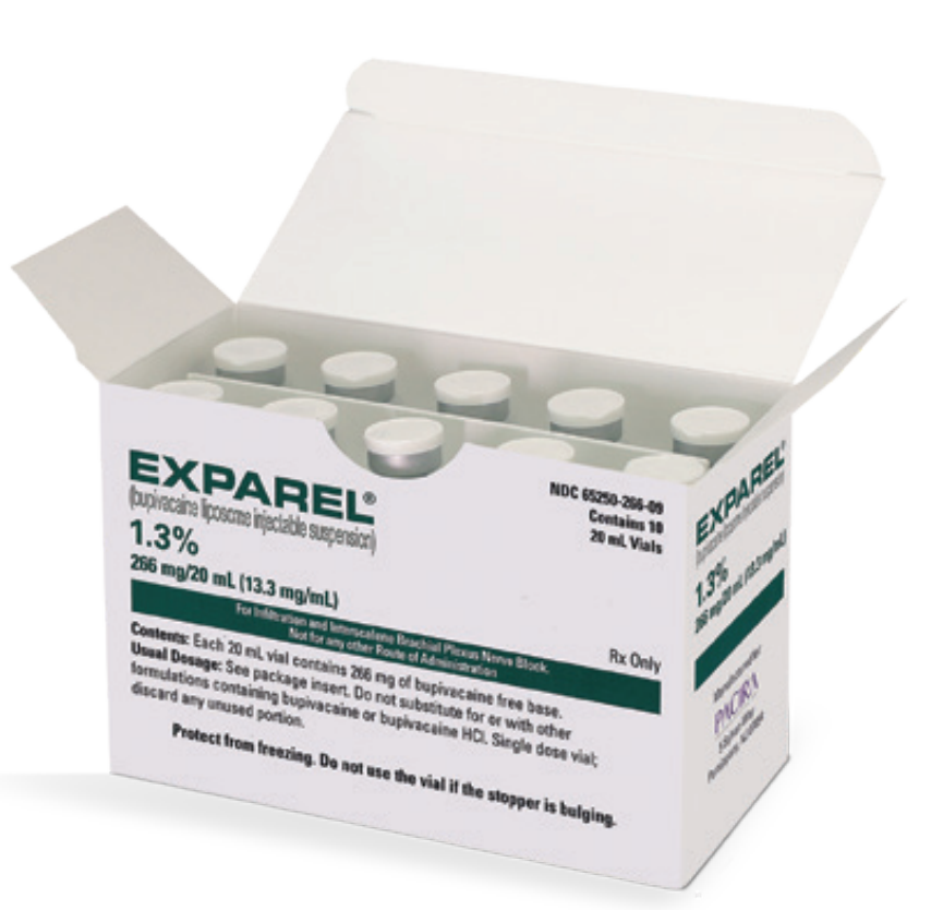EXPAREL is indicated for administration into the surgical site to produce postsurgical analgesia.1